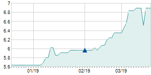 Closing price on 2/15/2019