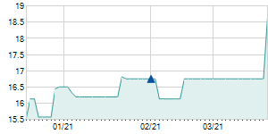 | 5/16/2018 | -0.10 / -0.52% | 19.90 | 19.90 | 19.00 | 19.00 | 19.75 | 14.09 | 600 |   |