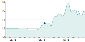 | 7/12/2018 | -0.10 / -2.50% | 3.90 | 4.00 | 3.90 | 3.90 | 3.90 | 3.27 | 56,000 |   |