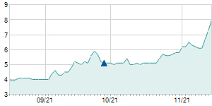 | 5/31/2011 | -0.10 / -1.69% | 5.50 | 5.80 | 5.50 | 5.80 | 5.58 | 5.65 | 1,800 |   |