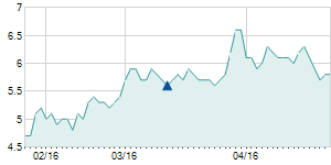 Closing price on 2/29/2016