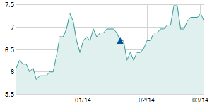 Closing price on 2/13/2008