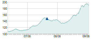 Closing price on 2/28/2008