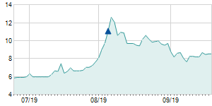 Closing price on 8/28/2017