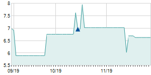 | 6/8/2018 | 0.00 / 0.00% | 3.90 | 3.90 | 3.70 | 3.90 | 3.77 | 2.66 | 769,700 |   |