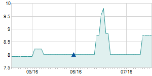 | 1/4/2017 | -2.70 / -22.69% | 12.40 | 12.40 | 9.20 | 9.20 | 10.78 | 5.07 | 4,200 |   |