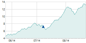 Closing price on 2/14/2020