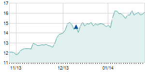 Closing price on 2/14/2020