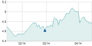 | 9/15/2025 | -0.10 / -1.89% | 5.10 | 5.30 | 5.10 | 5.20 | 5.12 | 5.20 | 22,300 |   |