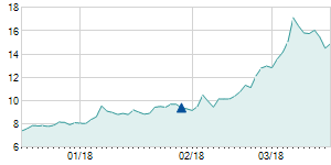 Closing price on 2/8/2018