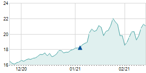 Closing price on 2/15/2023