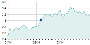 Closing price on 2/9/2012