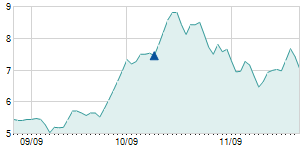 | 10/16/2015 | +0.30 / +4.05% | 7.30 | 7.80 | 7.20 | 7.70 | 7.49 | 2.43 | 110,310 |   |