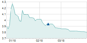 | 12/21/2018 | -0.50 / -3.70% | 13.50 | 13.50 | 13.00 | 13.00 | 13.12 | 8.42 | 3,000 |   |