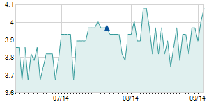 | 4/3/2014 | 0.00 / 0.00% | 8.60 | 9.00 | 8.60 | 9.00 | 8.91 | 6.44 | 40,011 |   |