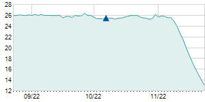 | 4/28/2014 | -0.80 / -6.06% | 13.50 | 13.50 | 12.20 | 12.40 | 12.67 | 8.88 | 12,816 |   |