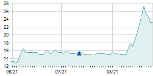 Closing price on 8/14/2020