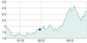 Closing price on 8/31/2012