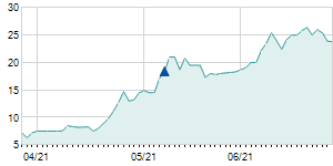 | 8/5/2016 | +0.10 / +0.45% | 20.50 | 22.90 | 20.10 | 22.40 | 21.03 | 5.08 | 1,900 |   |