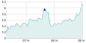 Closing price on 6/15/2012