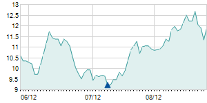 | 8/12/2015 | -0.10 / -0.79% | 12.60 | 12.70 | 12.40 | 12.50 | 12.53 | 4.91 | 545,810 |   |  |