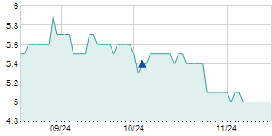 | 8/28/2012 | -0.20 / -2.15% | 9.40 | 9.40 | 8.90 | 9.10 | 9.10 | 4.67 | 176,940 |   |