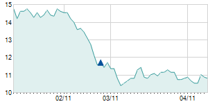 | 8/20/2012 | +0.10 / +0.93% | 10.80 | 11.00 | 10.70 | 10.90 | 10.90 | 5.60 | 85,260 |   |