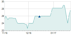 | 6/6/2018 | -1.00 / -4.00% | 25.70 | 25.80 | 24.00 | 24.00 | 25.59 | 23.18 | 9,260 |   |