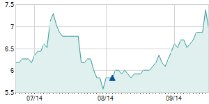 | 12/7/2015 | +0.20 / +2.33% | 8.60 | 9.40 | 8.60 | 8.80 | 8.64 | 8.80 | 315,468 |   |