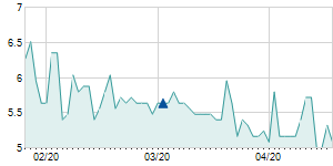 | 6/8/2020 | +0.37 / +6.98% | 5.52 | 5.67 | 5.41 | 5.67 | 5.64 | 5.25 | 3,765,840 |   |