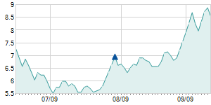 | 6/22/2012 | -0.10 / -1.75% | 5.50 | 5.60 | 5.40 | 5.60 | 5.53 | 5.60 | 6,000 |   |
