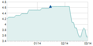 | 8/29/2012 | +0.10 / +2.50% | 3.90 | 4.10 | 3.90 | 4.10 | 4.10 | 4.10 | 3,400 |   |