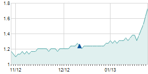 Closing price on 1/18/2013