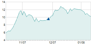 | 8/8/2014 | -0.30 / -2.65% | 11.50 | 11.50 | 10.80 | 11.00 | 11.00 | 11.00 | 103,300 |   |