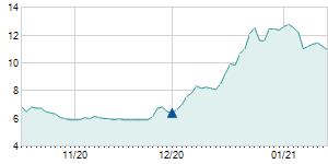 Closing price on 2/3/2021