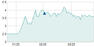 | 4/8/2013 | -0.50 / -10.87% | 4.50 | 4.50 | 4.10 | 4.10 | 4.10 | 4.10 | 3,700 |   |