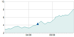 | 5/31/2012 | -0.20 / -2.30% | 8.20 | 8.50 | 8.10 | 8.50 | 8.50 | 8.50 | 7,200 |   |  |