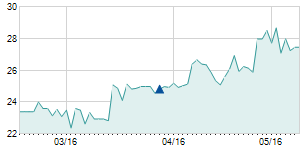 | 12/1/2014 | +0.30 / +1.07% | 27.90 | 28.50 | 27.50 | 28.30 | 28.30 | 5.94 | 28,870 |   |