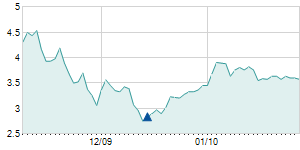 | 9/3/2015 | +0.10 / +2.00% | 5.00 | 5.10 | 4.90 | 5.10 | 4.98 | 3.15 | 3,010 |   |