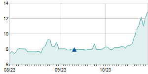 | 12/10/2010 | +0.70 / +2.66% | 26.30 | 27.00 | 25.50 | 27.00 | 27.00 | 7.13 | 102,950 |   |