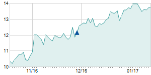 Closing price on 8/15/2016