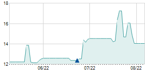 | 11/19/2015 | +0.50 / +4.35% | 12.10 | 12.10 | 11.50 | 12.00 | 11.67 | 9.60 | 10,800 |   |