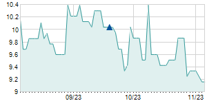 | 6/1/2015 | -0.10 / -1.04% | 9.40 | 9.50 | 9.40 | 9.50 | 9.43 | 7.60 | 8,200 |   |