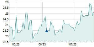 | 9/25/2025 | -0.20 / -0.77% | 26.25 | 26.25 | 25.70 | 25.90 | 26.06 | 17.86 | 42,300 |   |
