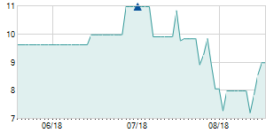 Closing price on 8/9/2017