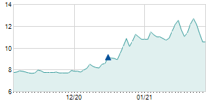 Closing price on 2/18/2022