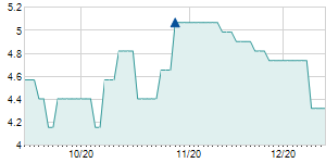 -0.80 / -4.91%