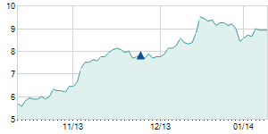 Closing price on 2/9/2022