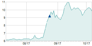 Closing price on 8/18/2017