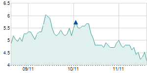 | 3/26/2021 | -0.65 / -5.75% | 11.00 | 11.00 | 10.65 | 10.65 | 11.00 | 8.02 | 80,100 |   |